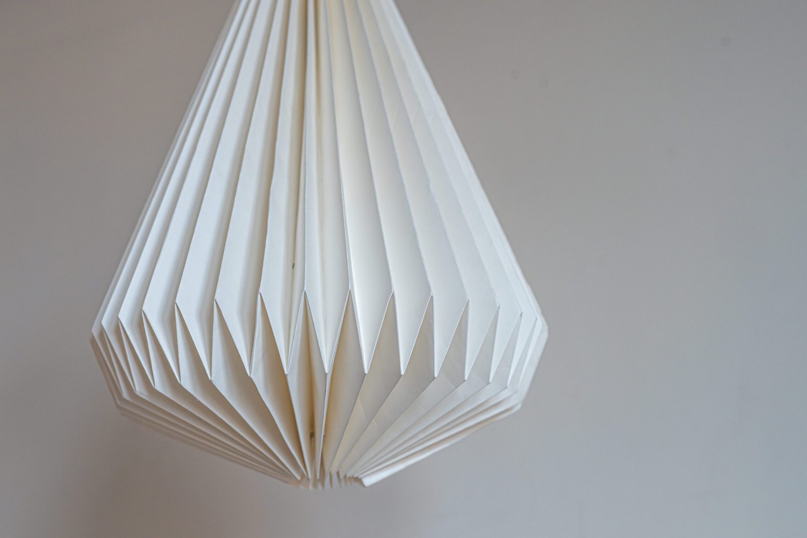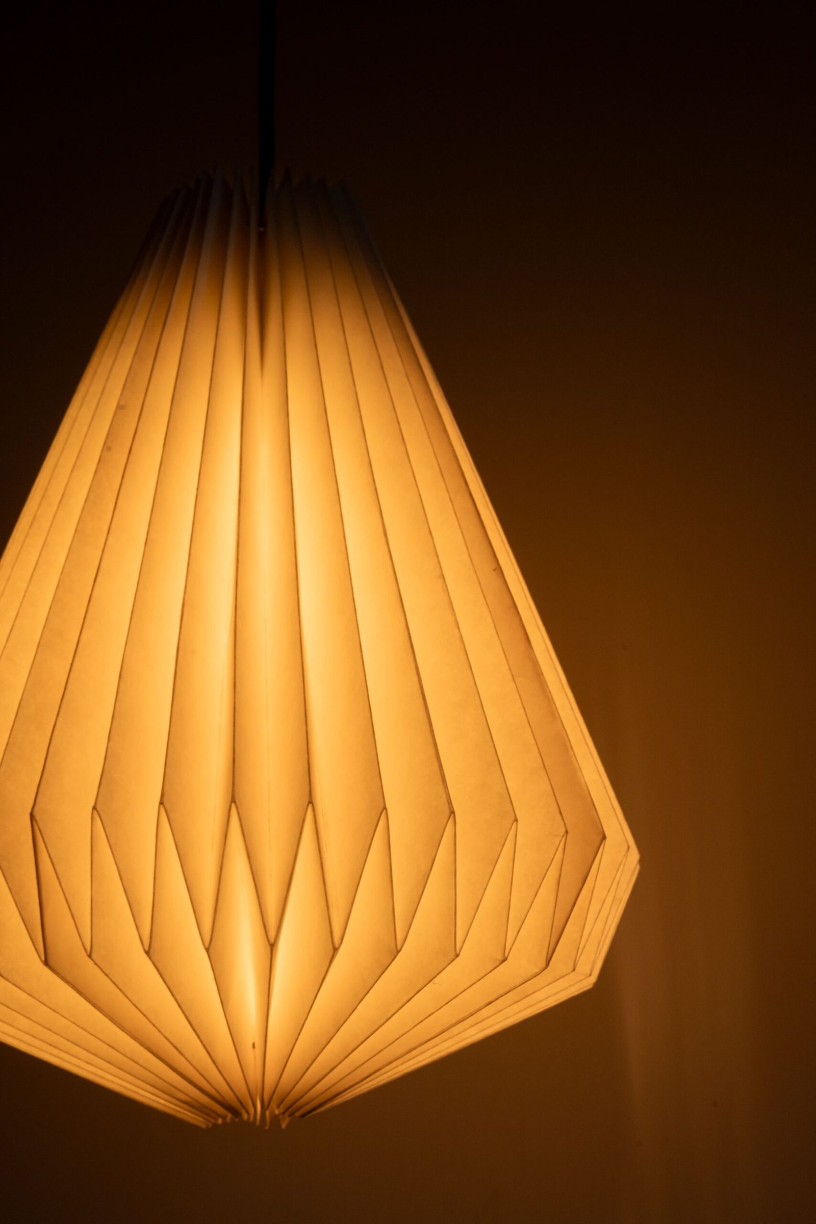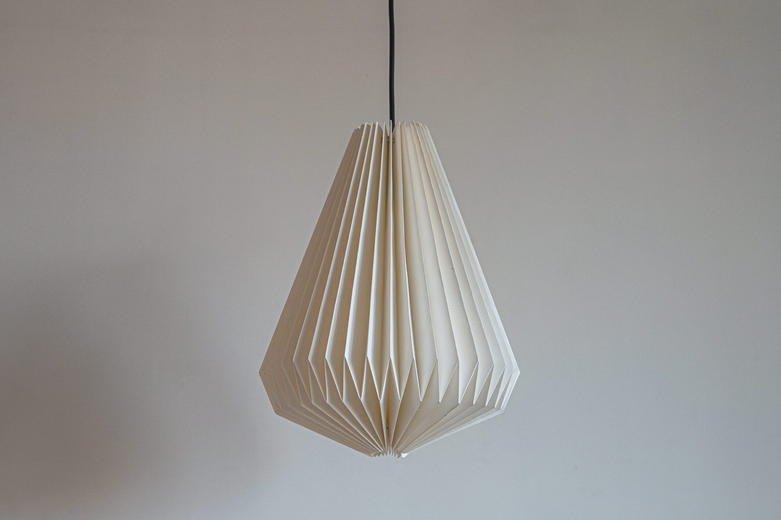 The Orion pendant lamp takes inspiration from celestial beauty with petal-like folds that open downward. Handcrafted from eco-friendly paper, it spreads a soft, even light, ideal for bedrooms, lounges, or cozy corners. Its unique shape makes it a versatile art piece that balances nature and modernity.